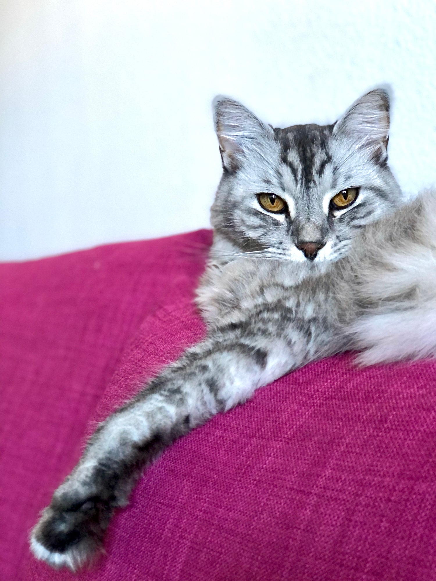 One day, in casual conversation, our parents mentioned they would have liked to be grandparents. We told them not to worry, because they were already Grand-Meow and Grand-Paw to Shaka! This led to the creation of Magenta Palm.